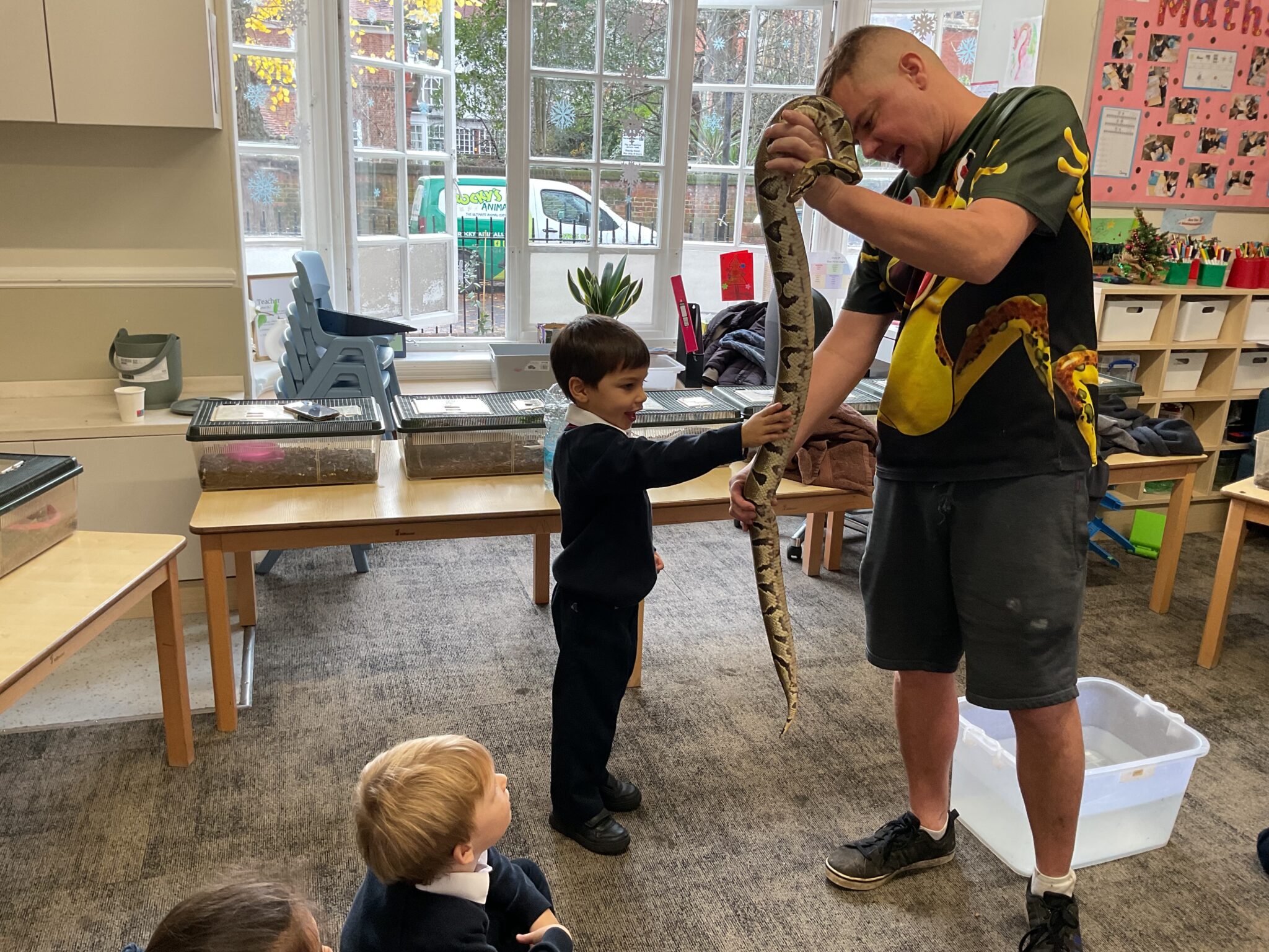 On other occasions experts are brought into the school to talk to the children. These are called ‘innings’. Examples of recent innings include a workshop about Florence Nightingale, a drama activity about Katie Morag and an island home, a maths magician, storytelling workshops and the exotic Rocky’s Animals. As part of the Dukes Education initiative, Poetry Together, we also welcome award-winning authors and poets to Orchard House to deliver inspiring workshops to our pupils from Year 3 to Year 6. Parents who are celebrating events such as Thanksgiving or Diwali are sometimes invited into their child’s form to share traditions with the whole group.